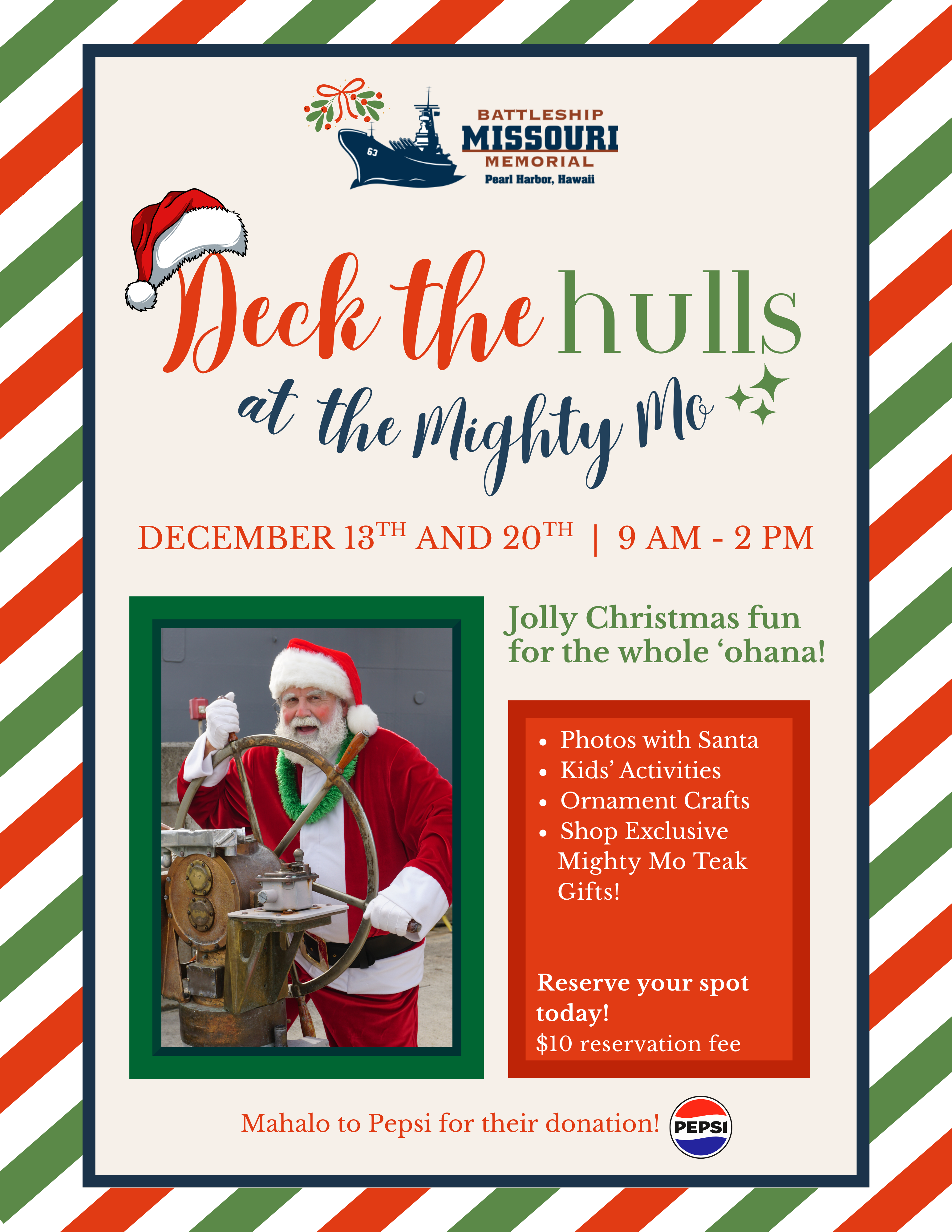 サンタがパールハーバーのマイティモーに特別に立ち寄ります。